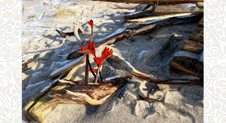 Ganz anders wiederum angelegt sind die Arbeiten aus der Serie "Die Roten Handschuhe". Allein schon die gegenständlichen Dinge des Alltags wirken kreativ wenn die Menschen den Blick und die Achtsamkeit darauf lenken. Der Rote Handschuh ist ein Leitfaden durch diesen Gedanken und darum findet sich das Motiv verbindend in vielen weiteren Arbeiten. Viel umfangreicher zu erfahren in der Galerie Art99 in Worpswede.