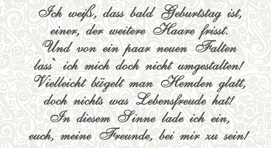 Schreibt man heute noch Einladungskarten? Immer noch ist die Karte die besondere Form der Einladung. Mit einem originellen Einladungsspruch werden ihre Gäste begeistert sein. Hier ein Beispiel. Viele weitere Einladungsgedichte finden Sie im Scriptaculum.