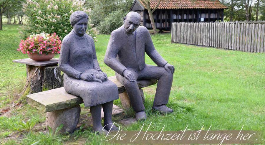 Es ist wie eine vorweggenommene Ahnung von der Zukunft, die diese Skulptur eines Paares ausstrahlt. Nach einer langen Ehe ist dieses die Ruhe, die sich das Paar bis in das hohe Alter gewünscht und bewahrt hat.