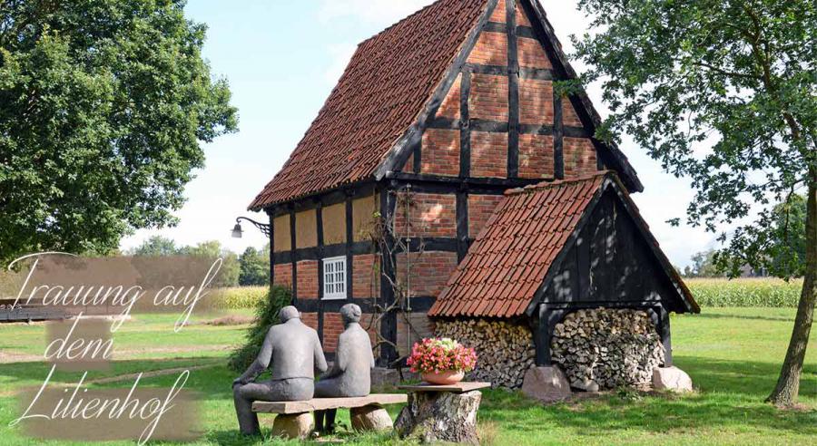 Der Lilienhof bietet ein ganz besonderes Ambiente für eine standesamtliche oder freie Trauung. Seit dem Sommer 2001 sind Hochzeiten mit einer Gästezahl von bis zu 80 Personen in dem alt-niedersächischen Bauernhaus möglich. Nicht nur das Haus mit altem Fachwerk, auch die Hofanlage selbst liefert den romantischen Rahmen für eine Hochzeit. Hier kann sich das Brautpaar stilvoll mit einer Hochzeitskutsche bis auf den Hof des Bauernhauses fahren lassen. Die ganze Hofanlage bietet außerdem eine sehr schöne Kulisse für brillante und professionell erstellte Hochzeitsfotos. Dort wo früher auf dem Flett das gesamte gemeinsame Leben der Bauernfamilie stattfand, können Brautpaare in romantischer Umgebung den Bund der Ehe eingehen. Eine standesamtliche Trauung ist vorher beim Standesamt Worpswede anzumelden. Dieses ist zuständig für die Gemeinden Lilienthal, Grasberg und Worpswede.
