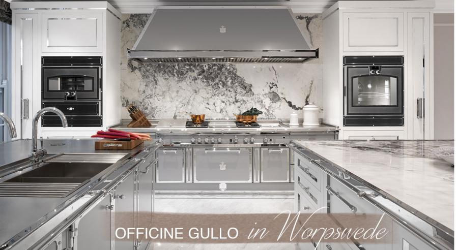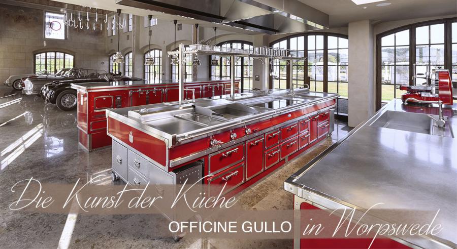 OFFICINE GULLO ist ein High-End Küchenhersteller für Planung und den Aufbau exklusiver Küchen in besonderen Stilrichtungen und einer überraschenden Optik. Küchen, Herde und Zubehör werden im Wesentlichen nach Vorgaben der Kunden gefertigt. Aus den edlen Materialien entstehen wahre Kunstwerke in einer Handwerksqualität, die Generationen überdauert. Vorbild für viele Herde sind die großen Kochinstallationen aus Schlössern und Burgen. Vom Nachbau einer alten Schlossküche bis zur modernen Kochinsel in praktisch jeder Größe gibt es Lösungen für private Haushalte bis zu den Profiküchen der Sterneköche. OFICINE GULLO Küchen können jedem Einrichtungsstil angepasst werden und die edlen Farben sind eine Bereicherung für die Phantasie. Alle Energiequellen können verbaut und kombiniert bestellt werden. Profis bevorzugen in jeder Hinsicht das Gaskochfeld. Perfekte Kochergebnisse erzielen Töpfe und Pfannen aus Kupfer. In Kürze werden hier die vielen Varianten dieser besonderen Handwerkskunst vorgestellt. Gefertigt wird nach Maß, die Lieferzeit beträgt 6 – 9 Monate.