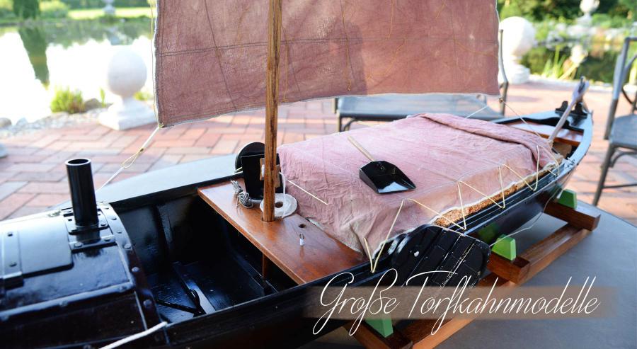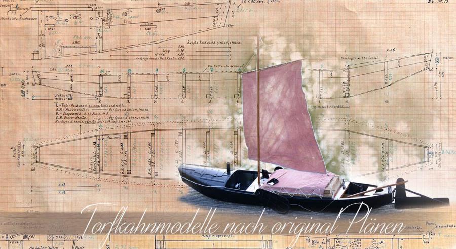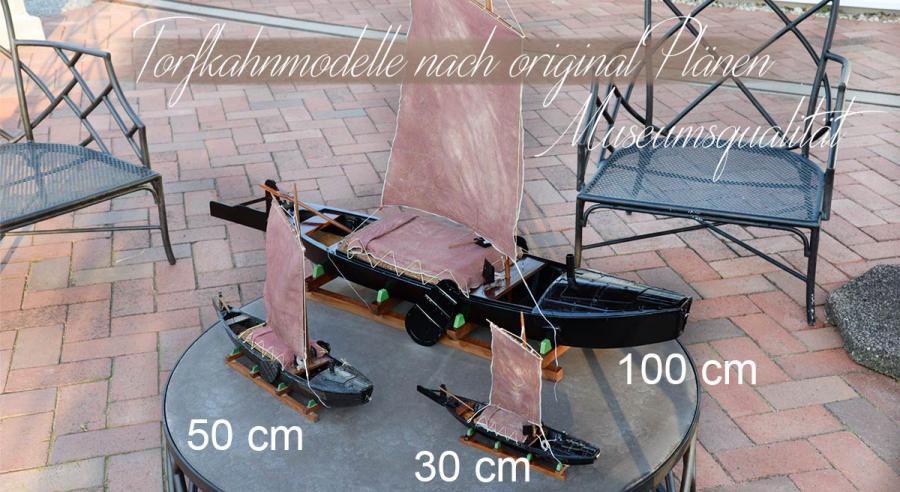 Hier finden sie neue Torfkahnmodelle in Museumsqualität. Gebaut nach original Plänen von ca. 1925. In drei Größen sind diese perfekten Nachbildungen erhältlich. Mit 30 cm, 50 cm, und 100 cm Länge sind diese Modelle vom Original kaum zu unterscheiden. Der Detailreichtum entspricht der Originalausstattung und ist darum für historische Dioramen geeignet. Aber auch zur Zierde und zur Dekoration sind diese Modelle von Torfschiffen eine Augenweide. Worpswede und das Teufelsmoor sind eine einzigartige Kulturlandschaft, die auch maßgeblich von den Torfschiffen geprägt wurde. Darum wird diese Landschaft immer wieder über das Torfschiff mit seinem braunen Segel erkannt. Die neuen Modelle sind kleine Kunstwerke der liebevollen Handarbeit. Hier kommt Kunst vom Können um das Torfschiff in allen seinen Eigenarten besonders genau darzustellen. Es ist Kunst, leider ohne Gestaltungsspielraum wegen der Vorgabe durch den originalen Plan eines Torfkahns.