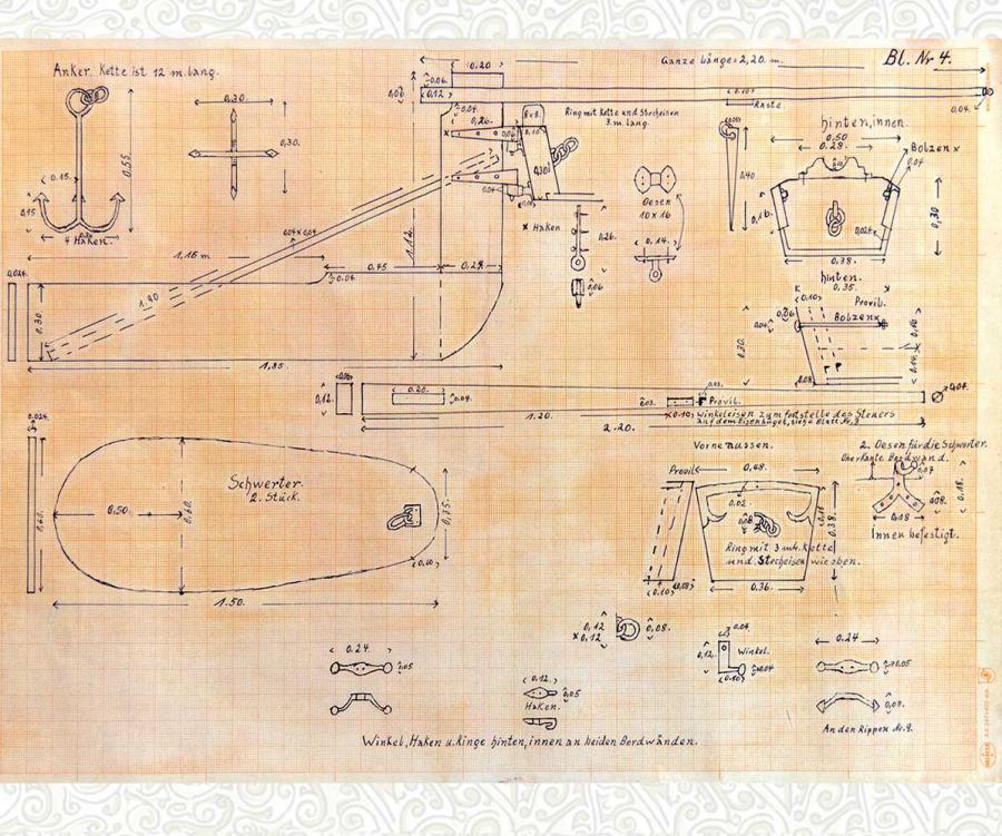 Es ist wie ein Bauplan für neue Torfkahnfahrten auf der Hamme. Dieser Plan war das Vorbild für die Torfschiffe des Vereins Findorff´s Erben.