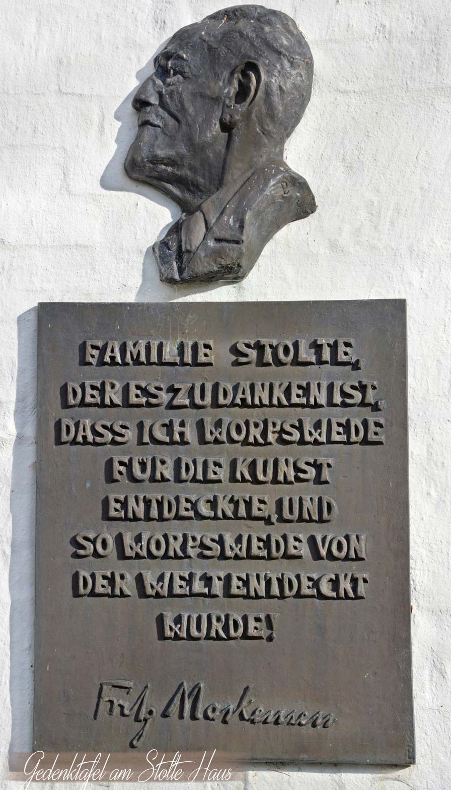 Auch Fritz Mackensen studierte seit 1884 mit Fritz Overbeck und Otto Modersohn an der Düsseldorfer Kunstakademie. Fritz Mackensen kommt 1884 erstmals nach Worpswede und neben der Landschaft und dem Licht war es wohl die Liebe zur Kaufmannstochter Mimi Stolte in Worpswede, die ihn dazu motivierte. Am Stolte Haus erinnert eine Gedenktafel an den Begründer der Künstlerkolonie Worpswede und seinem berühmten Ausspruch, dass er selbst es gewesen sei, der "Worpswede für die Kunst entdeckt" hätte. Aber auch dass "Worpswede von der Welt entdeckt wurde". Aber ohne Frage zieht sich dieses Selbstbewusstsein durch das Lebenswerk von Fritz Mackensen. Etwas gewagt mag vermutet werden, dass dass nicht nur das Licht, die Landschaft und die Liebe zur Kunst die Künstlerkolonie Worpswede begründet hat, sonden die zufällige Beziehung eines Künstlers zur hiesigen Kaufmannstochter Mimi Stolte. Posthum sei ihr hiermit ein Teil des Ruhmes von Fritz Mackensen und der Entdeckung des Weltdorfes der Kunst zugeschrieben, denn ohne sie....wäre Fritz Mackensen vielleicht doch nicht in Worpswede gebleiben. Berühmt ist auch sein Zitat über den Weyerberg.