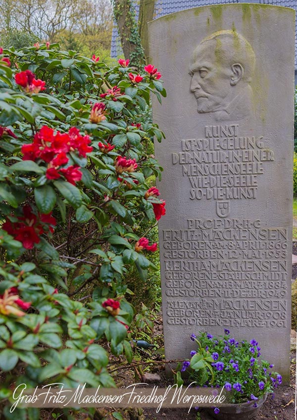 Von 1895 – 1904 lebte Mackensen ständig in Worpswede. Ab 1910 wurde er Direktor an der Kunsthochschule in Weimar. Er kehrte jedoch 1918 wieder in die Künstlerkolonie zurück. 1953 stirbt Fritz Mackensen in Bremen nach einem bewegten Leben, das auch durch die wechselnden politischen Richtungen dieser Zeit geprägt wurde. Seine letzte Ruhe fand Mackensen auf dem Worpsweder Friedhof neben der Zionskirche Worpswede.