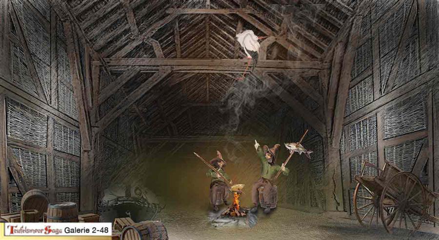 Eine kleine Scheune im Moor hätte nicht ausgereicht, um darin die riesige Maschine zu bauen. Darum ließ der Vogt ein Haus von besonderer Größe bauen. Mit Hilfe seines blauen Kristalls versuchte er, ferne Bedrohungen zu erkennen. Dass etwas um ihn herum vorging, hatte er bereits bemerkt.