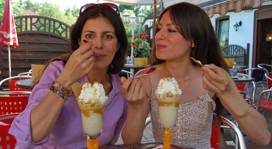 Die moderne, frei überdachte Sonnenterrasse ist für den unbeschwerten Eisgenuss bei jedem Wetter für sie bereit. Die Pause im Eiscafé passt immer. Als Nachtisch im Anschluss an das Mittagessen, als Erholung am Nachmittag, bei der Fahrradtour zur Stärkung oder einfach nur zum Vergnügen. Sicherlich haben Sie ihre Lieblingssorten, aber probieren Sie einmal unsere neuen Eiskreationen. Vielleicht entdecken Sie eine neue Eisleidenschaft.