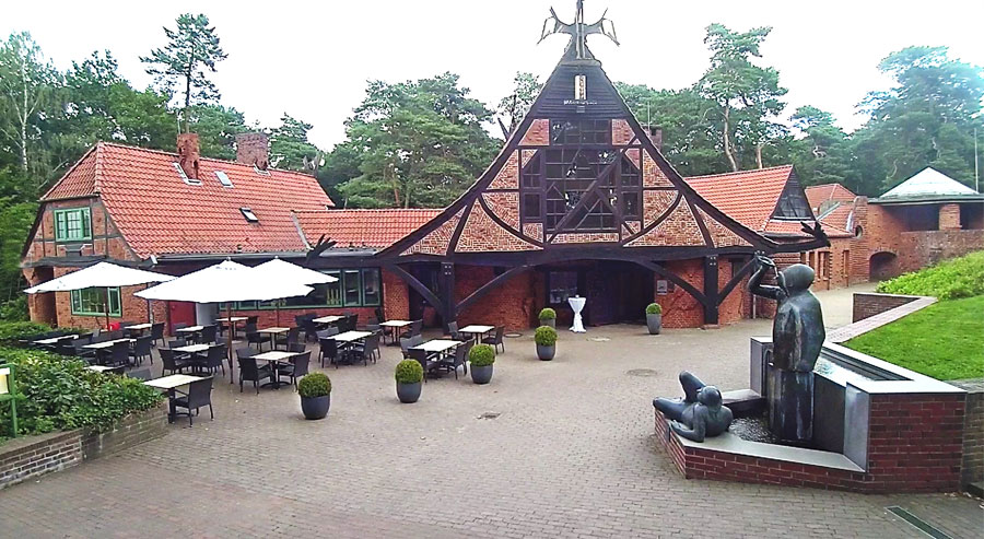 Besuchen das Haus "Kaffee Worpswede" und das Museum "Große Kunstschau" gleich nebenan. "Kaffee Worpswede" ist der ursprüngliche Name des ungewöhnlichen Hauses, das derzeit wegen Renovierungsarbeiten geschlossen ist. Sehr Interessantes zum Kaffee Worpswede und der Historie dieses Hoetger Ensembles lesen Sie unter Worpswede Museen.