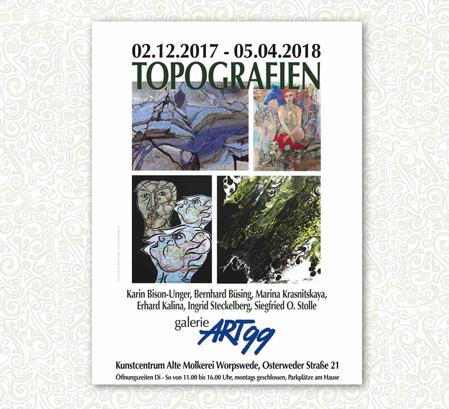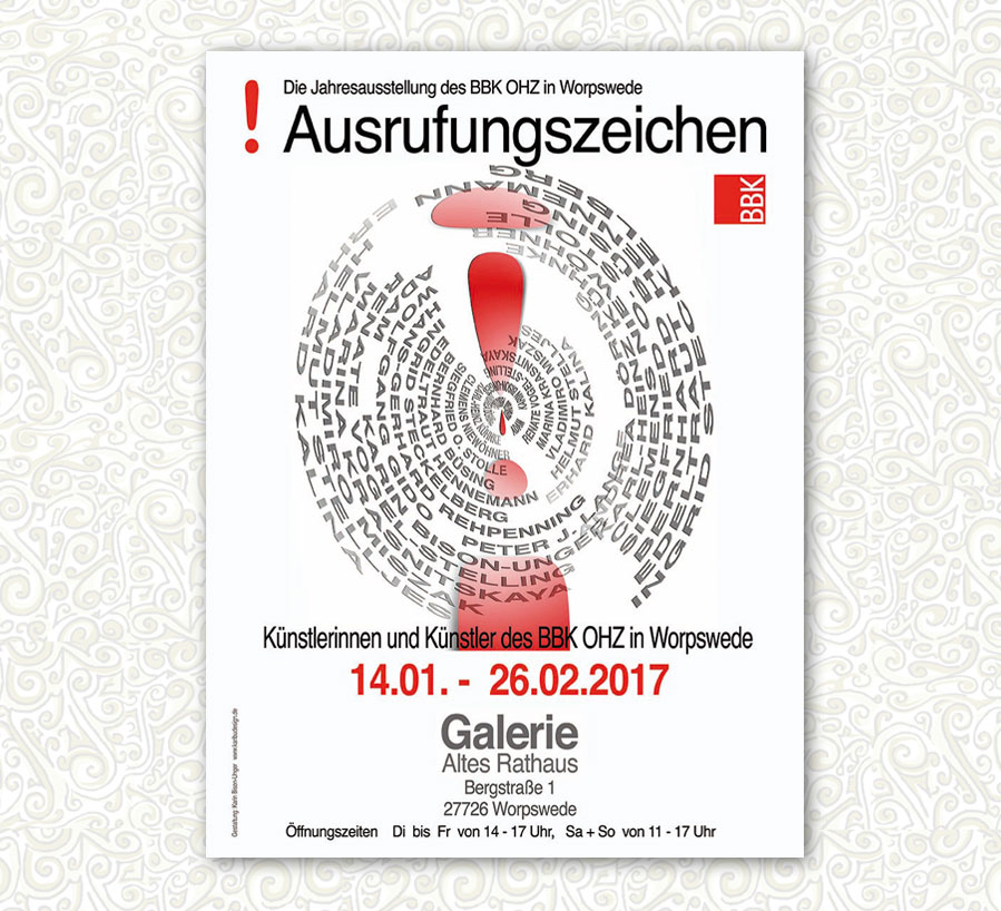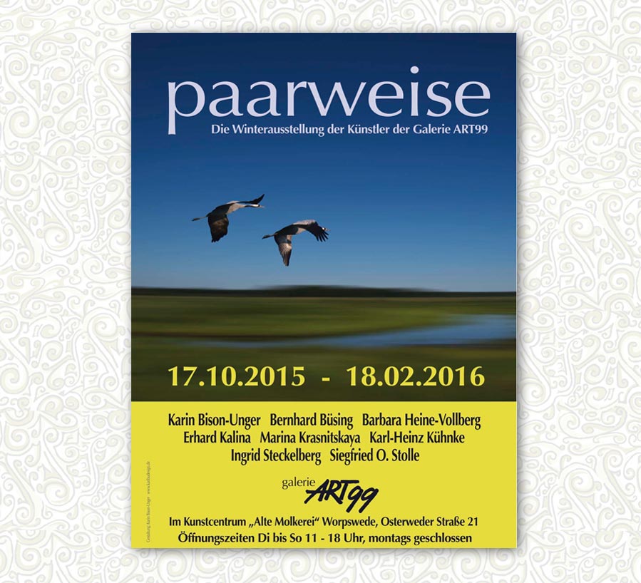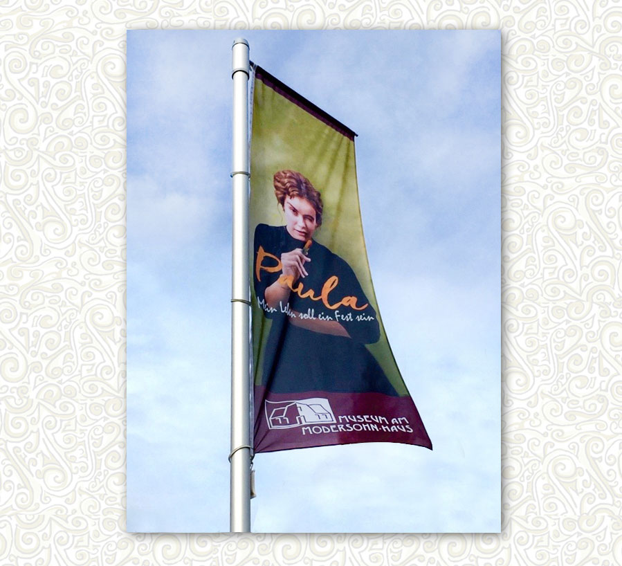 Als Impressionen meiner Arbeiten von grafischen Gestaltungen/ Designs, die ich u.a. als Designauftrag für die Galerie ART99 oder den BBK machte, hier einigee exemplarische Werke. Die „Paula“-Fahne vor dem Museum am Modersohn-Haus habe ich im Jahre 2017 entworfen für die große Paula-Modersohn-Becker Ausstellung.