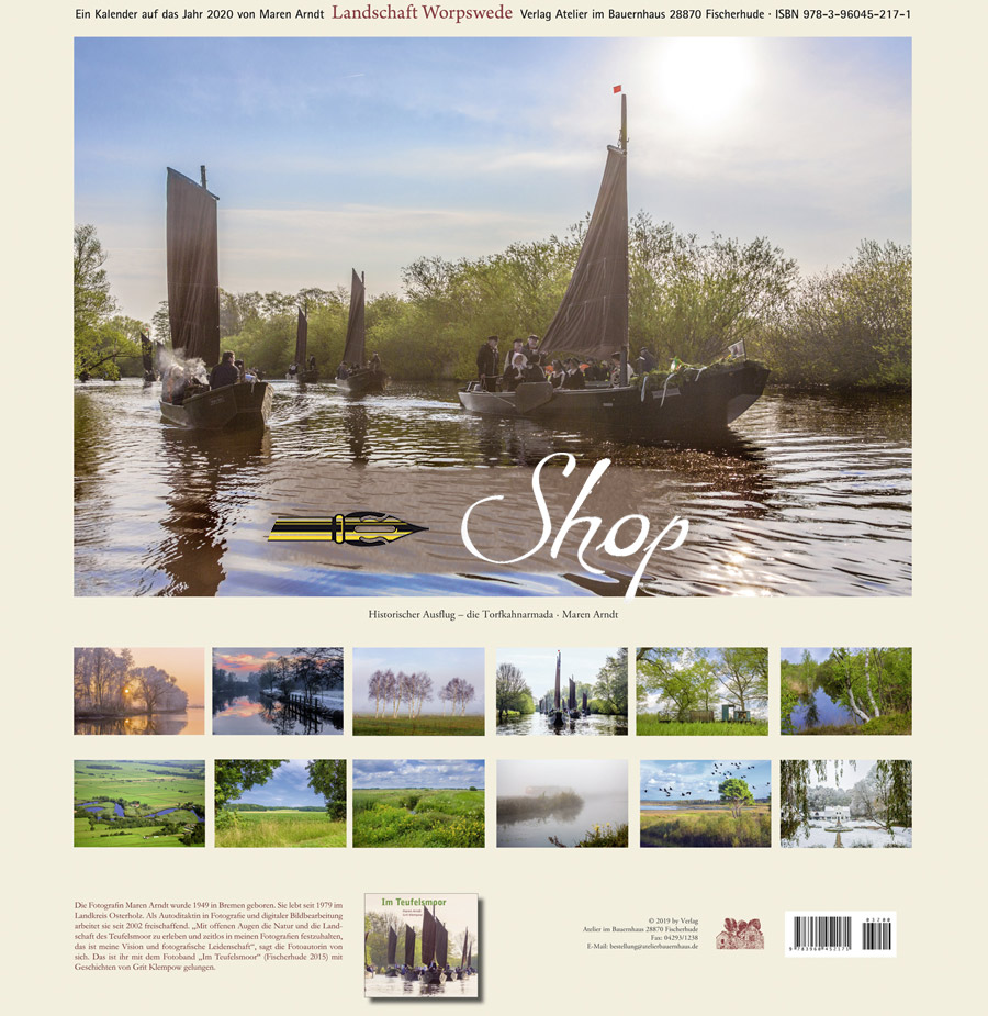 Die einzigartigen Schönheiten der Landschaft in Worpswede und der Region werden von der Fotografin Maren Arndt in ihrer unnachahmlichen Art eingefangen. Dieses Übersichtsblatt zeigt die Bildinhalte des neuen Kalenders und es fühlt sich in wenig so an, als sei die Zeit von vor über 100 Jahren stehen geblieben. Und genau dieser Eindruck macht deutlich, wie sehr Worpswede auf die Tradition achtet und seine Wurzeln nicht vergisst. Denn was heute entstanden ist, nahm vor Jahrhunderten seinen Anfang mit einem ersten bäuerlichen Leben. Später dann wurde die Region entwickelt und strukturiert durch Jürgen Christian Findorff, dessen Denkmal seit 200 Jahren auf dem Weyerberg steht. Mit jedem Bild aus diesem Kalender wird die Stimmung für das Worpswede der Ersten Maler in Erinnerung gerufen.