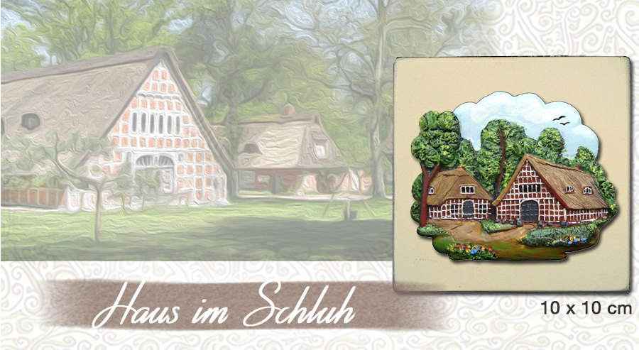 Martha Vogeler, die erste Frau von Heinrich Vogeler, verließ den Barkenhoff 1920 mit ihren drei Töchtern. Mit Unterstützung Heinrich Vogelers wurde in einem benachbarten Dorf eine alte Moorkate abgebaut und hier neu errichtet. Schluh bedeutet im Plattdeutschen Sumpf. Weitere Gebäude kamen hinzu und heute sind drei wunderschöne Fachwerkhäuser zu besichtigen. Das Haus im Schluh beherbergt ein Gästehaus und ein Museum mit der Handweberei sowie der Heinrich Vogeler Sammlung. Das Ensemble dieser liebevoll gepflegten Häuser ist ein oft fotografiertes Motiv.