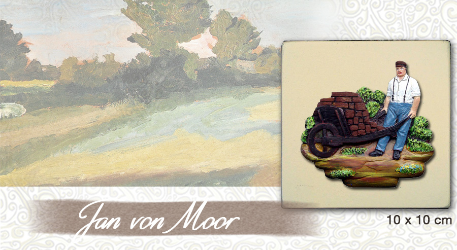 Die Torfstecher sind die eigentlichen Helden der Region. Das Teufelsmoor um Worpswede erschien über Jahrtausende als wertlos für die menschliche Besiedelung und Nutzung. Erst mit der systematischen Erschließung des Moores durch Kanäle, erste Entwässerung und die Gründung neuer Dörfer durch Jürgen Christian Findorff bot sich den Menschen ein erstes wirtschaftliches Überleben. Der Torf als Brennmaterial für Bremen wurde zentraler Wirtschaftsfaktor für diese Region. Torfstecher, die sich einen eigenen Torfkahn leisten konnten, erreichten einen gewissen Wohlstand. Unser Sammelmotiv erinnert an die schwere Arbeit im Teufelsmoor.