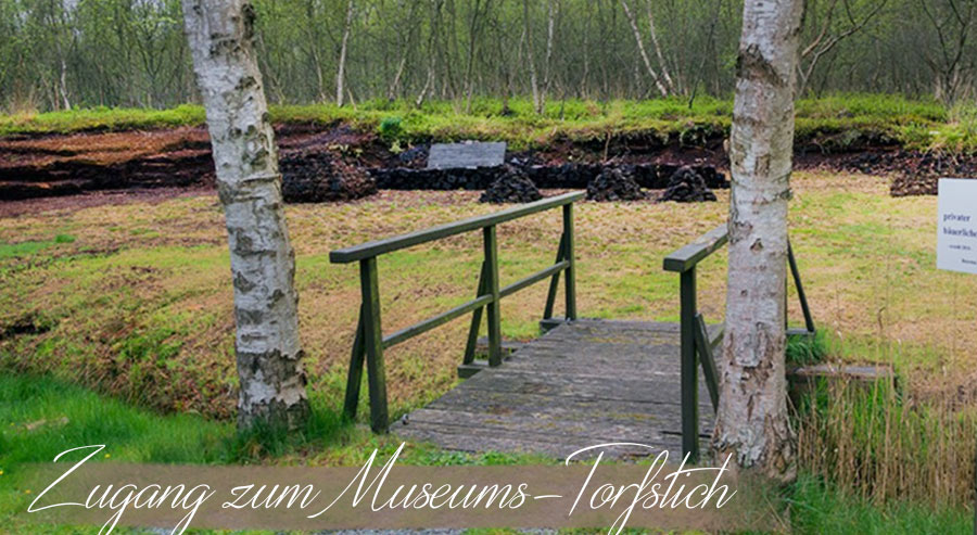 Dieser Zugang führt zum liebevoll wieder hergerichteten Torfstich im Teufelsmoor. Sie als Gast unserer Region können hier den eigentlichen Grund für die vielen Torfkähne finden. Denn ohne Torfabbau bräuchte man keine Transportmittel. Hier lässt sich erahnen, wie schwer die Arbeit damals im Moor war. Der Torf lag in Schichten bis zu 10 Metern Höhe - oder Tiefe, wenn man von der Oberfläche ausging. Als Brennmaterial war nur das untere Drittel wirklich brauchbar. Diese Schichten hatten eine durch das Gewicht verdichtete Struktur und damit mehr brennbares Material. Getrocknet haben die Torfsoden des sogenannten Schwarztorfes fast die Eigenschaften von Holz.
