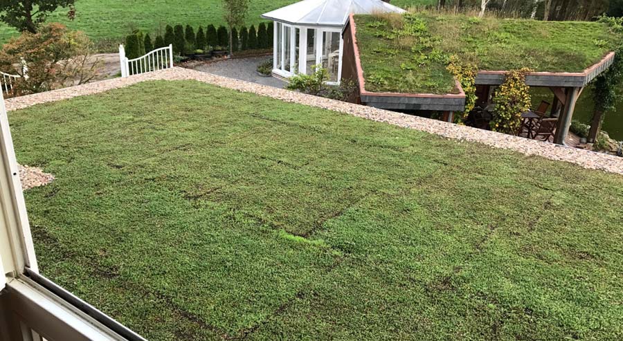 Ein grünes Dach ist nur am Anfang etwas aufwendiger. Die Investition lohnt sich auf lange Sicht. Über Jahrzehnte hält das Dach wie am ersten Tag und braucht niemals Pflege. Es funktioniert von selbst. Oder wie hier, wo aus den Räumen oben der Blick auf die Grünfläche entspannend wirkt, ist das Gründach eine Frage von natürlicher Schönheit. Nebenbei speichert es Wasser, sorgt für angenehmes Klima und ist ein Meisterwerk für die Natur.
