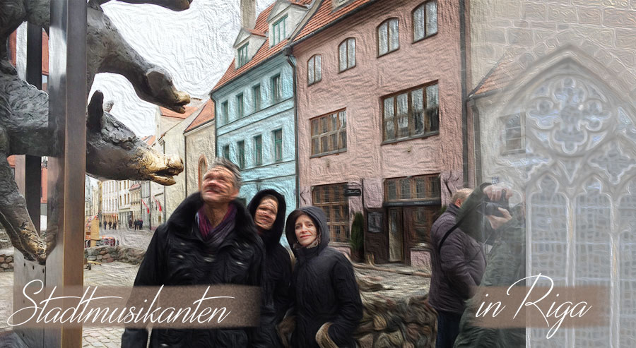 Riga in Lettland ist eine der Partnerstädte Bremens. Seit 1990 gibt es auch hier eine moderne Interpretation der Bremer Stadtmusikanten. Die Skulptur ist ein Geschenk des Bremer Senats an die Partnerstadt.