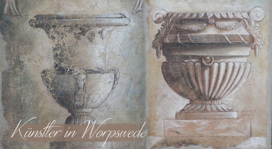 Malerei in Worpswede ist mehr als ein Landschaftsbild. Als Fresko ist die Kunst auch offen für dekorative Ornamentik. Ornamente in den gedeckten Farben der Malerei auf Kalkputz wirken durch ihre natürliche Struktur besonders harmonisch in jeder Umgebung. Ideal sind die Bilder auch für Restaurants und öffentliche Räume. Die oft traditionelle Bildaussage wirkt angenehm entspannt.