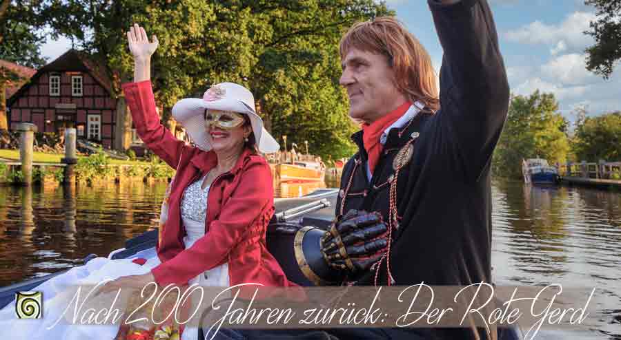 Der Schmuggler von 1850 ist im Teufelsmoor wieder aufgetaucht. Wie und warum ist bisher nicht bekannt. In seinem Torfkahn "Der fliegende Friedrich" hat er mit seiner Herzensdame Isabella an der Hammenacht 2022 zum ersten Mal teilgenommen. Seine Geschichte wird nach und nach von der Teufelsmoorsaga aufgedeckt. Erleben Sie den Roten Gerd auch auf der Hammenacht 2023.