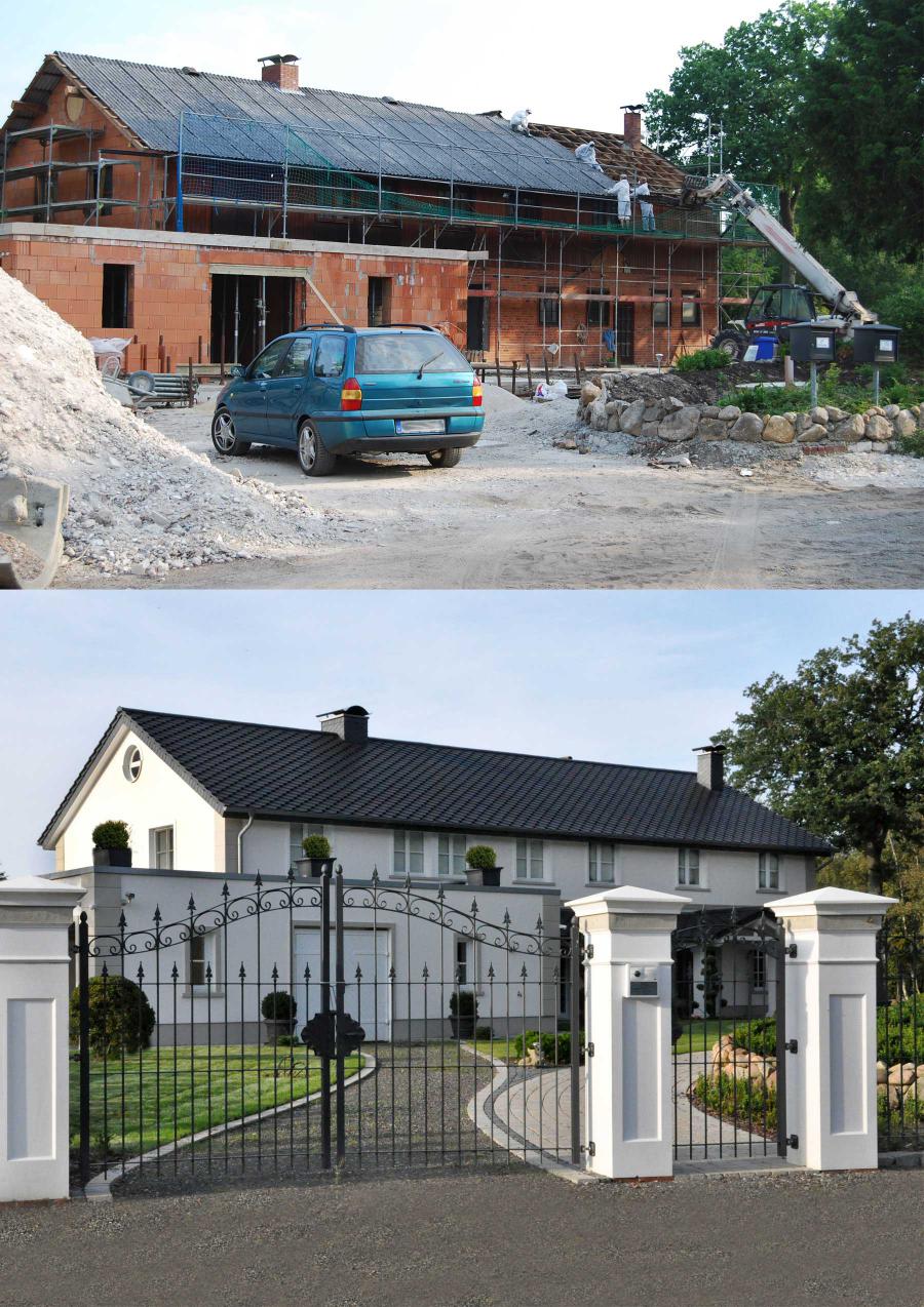 Ein altes Landhaus wurde innen und außen mit einem Konzept der Bauunternehmung Helmut Kück saniert. Die besondere Herausforderung bestand hier in der Fassade, die über verschiedene Materialien zu einer einheitlichen Struktur aufgebracht wurde. Klick auf das Bild führt zu weiteren Referenz-Objekten.
