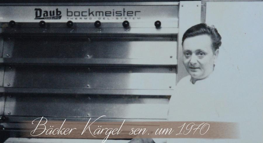 Hier ist die Familientradition der Bäckerei Kärgel im Bild sozusagen "verewigt". Bäckermeister Kärgel sen. um 1970 in der Backstube, dort wo auch heute noch frisch für den Ort gebacken wird.
