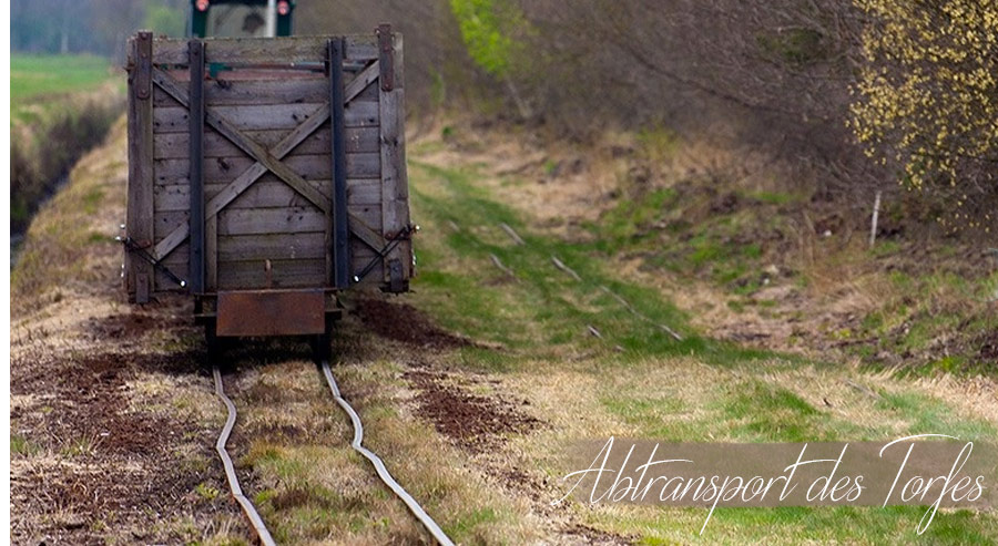In Moorgebieten ist bis heute die alte industrielle Feldbahn mit 60 cm Spurweite im Einsatz. Die Gleise sind sehr mobil weil sie leicht ab- oder aufgebaut werden können. Immer, wenn eine neue Reihe im Moorgebiet zum Abbau vorbereitet wurde, sind die Gleise neu verlegt worden. Der lange Zug mit den Feldbahnloren war also immer in der Nähe des Torfabbaues.