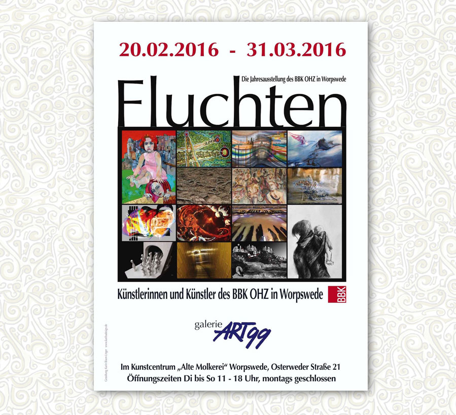 Als Impressionen meiner Arbeiten von grafischen Gestaltungen/ Designs, die ich u.a. als Designauftrag für die Galerie ART99 oder den BBK machte, hier einigee exemplarische Werke. Die „Paula“-Fahne vor dem Museum am Modersohn-Haus habe ich im Jahre 2017 entworfen für die große Paula-Modersohn-Becker Ausstellung.