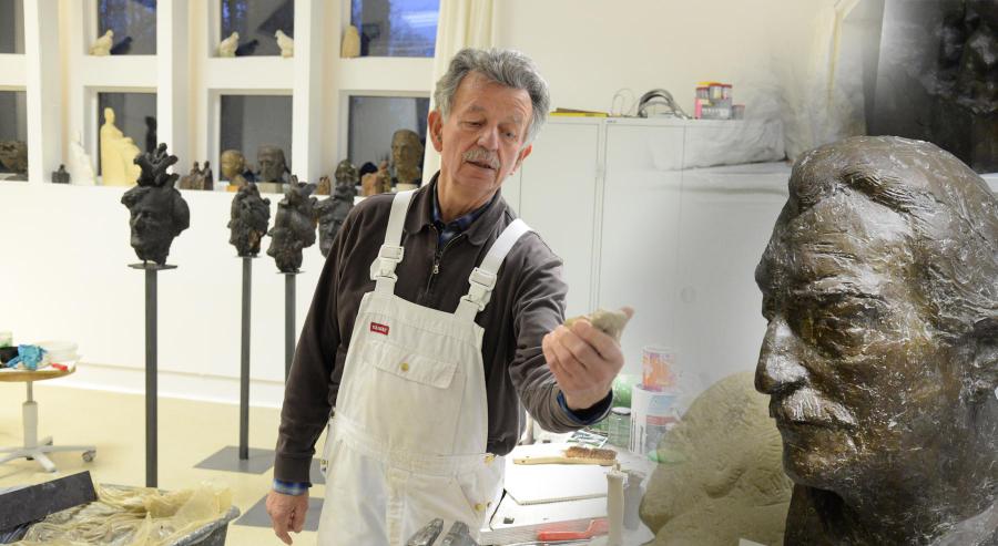 Plastiken von Bernd Altenstein wirken wie aus dem Leben gegriffen und vereinen dennoch künstlerische Freiheit. Hier eine Büste des berühmten Musikers James Last (âœÂ).