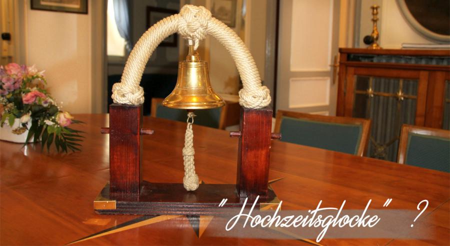 Es sind nicht die Hochzeitsglocken, die auf dem Schulschiff läuten. Hier sehen Sie die original Glasenglocke des Schiffes, mit der zur aktiven Zeit die Stunden gemeldet wurden. Heute beschließt die Glocke mit einem kräftigen Schlag die Zeremonie der Trauung. Wieder ein deutliches Zeichen für Sie: Die Reise in die Zukunft beginnt hier!