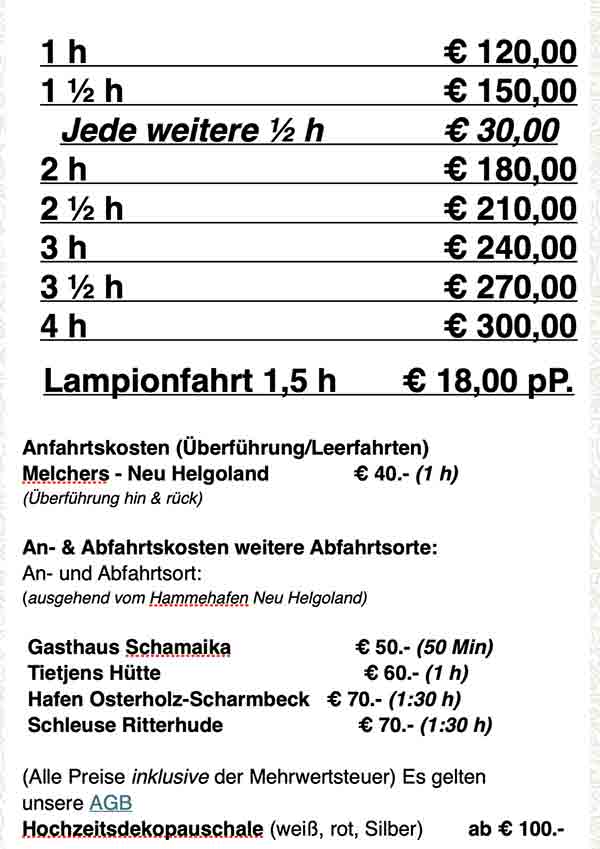 Mobil: 0152 56798570 FAX: 04792 989865 Büro: Worpsweder Torfschifffahrt, Wolfgang Wedelich, Totenweg 2, 27726 Worpswede / Waakhausen