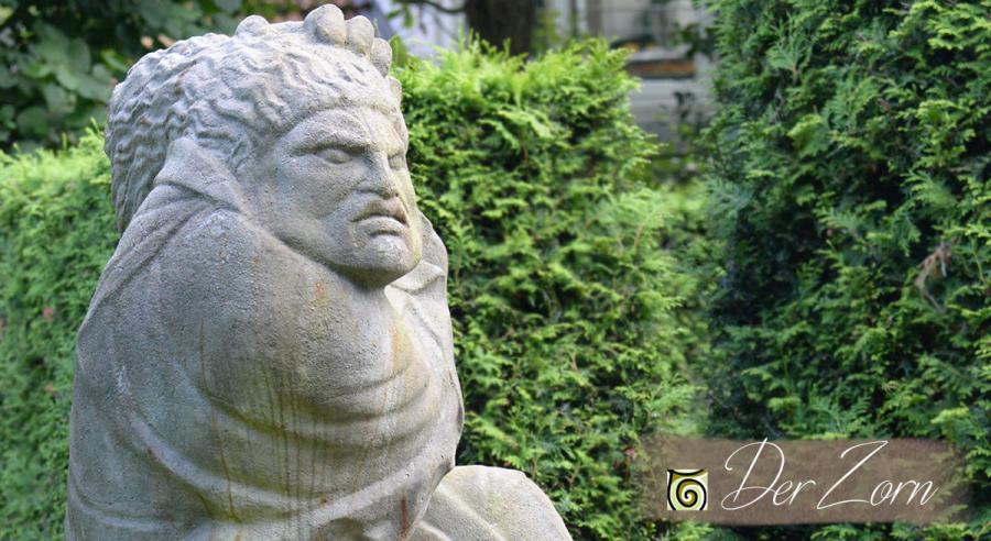 Die Großplastik "Der Zorn" von Bernhard Hoetger steht öffentlich zugänglich rechts von der Zuwegung zum "Kaffee Worpswede", das ebenfalls von Bernhard Hoetger erbaut wurde. Diese Skulptur ist ein weiterer Ausdruck der Arbeiten von Bernhard Hoetger aus einem Zyklus der guten und schlechten Eigenschaften des Menschen. Der Zorn ist eine der sieben Todsünden des Menschen und diese Plastik nimmt den Betrachter mit in die Stimmungslage dieser Darstellung, die anscheinend nichts Anderes ausstrahlt als den puren Zorn. Hier zeigt sich einmal mehr die zu recht berühmte Gestaltungskraft dieses großen Künstlers seiner Zeit. Wenn auch oft über seine Werke kontrovers diskutiert wird, im Falle dieser Skulptur bleibt beim Betrachten der steingewordenen Körpersprache eine nachhaltige Erkenntnis: Zorn wird sichtbar, Zorn ist verräterisch und kann nicht versteckt werden. Und geht die Interpretation weiter signalisieren die Hände, die die Haare raufen, im Grunde auch Hilflosigkeit.